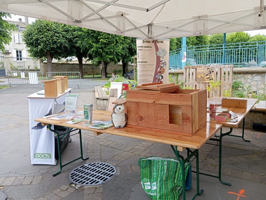 La première action du projet a été la tenue d’un stand pendant la fête de l’arbre à Melle. Une cinquantaine de personnes sont passées au stand où étaient proposés : fabrication de nichoirs, dissection de pelotes de réjection par des étudiantes en GPN du lycée agricole, et concours de dessin pour les enfants. Egalement, le court métrage « Le temps d’une nuit » de Sorenza Phelippeau a été projeté pendant les séances de diffusions. Cette première action a eu beaucoup de retours positifs et a permis au groupe la construction de plusieurs nichoirs.